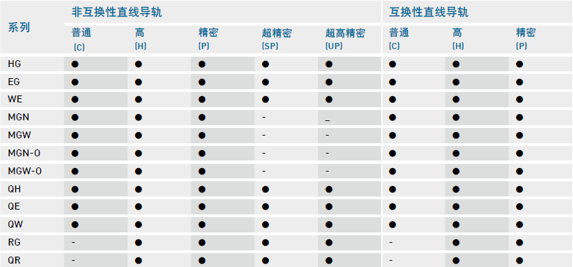 上銀直線導軌系列精度等級