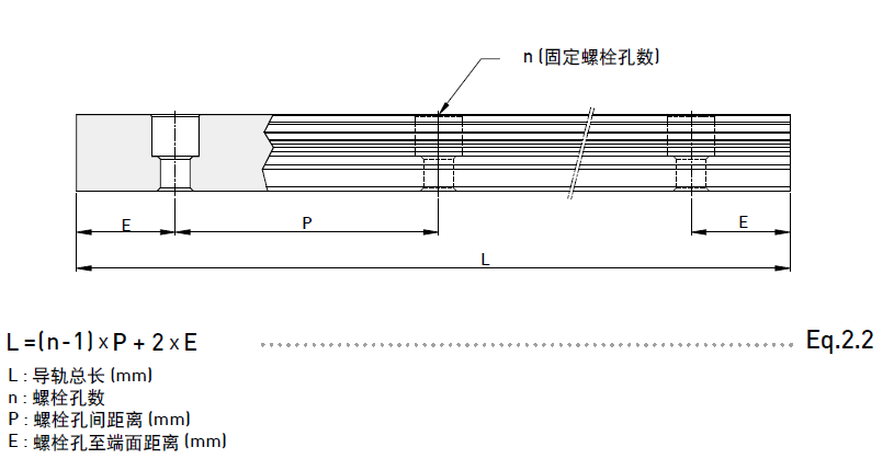 HIWIN 備有導(dǎo)軌標(biāo)準(zhǔn)長(zhǎng)度庫(kù)存供應(yīng)客戶需求。若客戶訂購(gòu)非標(biāo)準(zhǔn)長(zhǎng)度導(dǎo)軌時(shí),端面距離E的尺寸最好不要大于1/2P,防止因E的尺寸過大導(dǎo)致導(dǎo)軌裝配后端部的不穩(wěn)定,而降低直線導(dǎo)軌的精度。