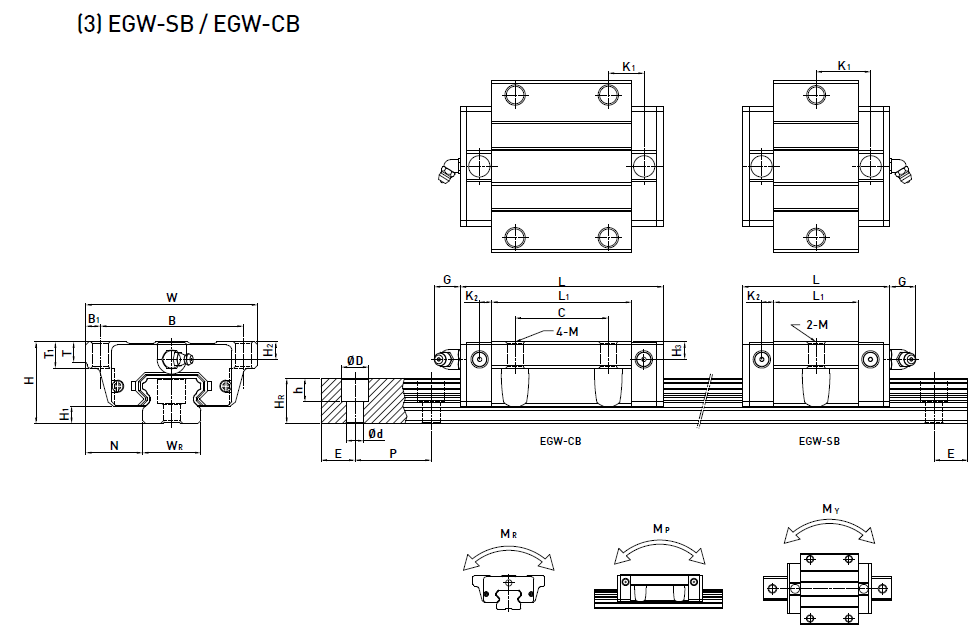 低組裝型滾珠直線導(dǎo)軌EG系列尺寸表