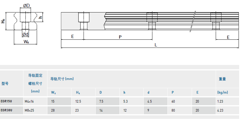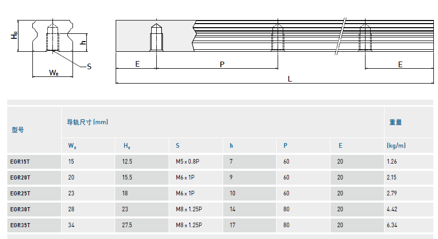 低組裝型滾珠直線導軌EG系列上、下鎖式區別及尺寸表