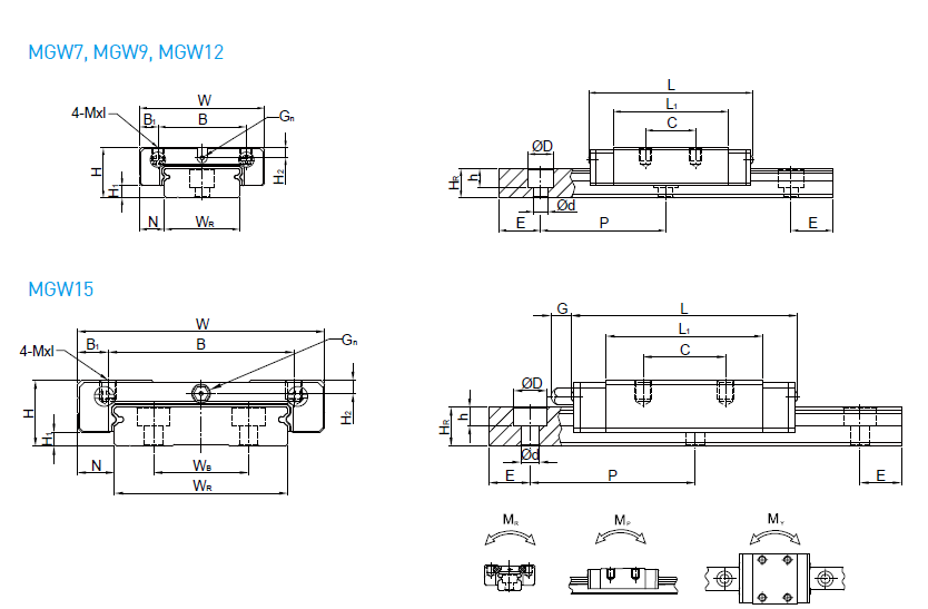 而MGW(寬幅)系列則是加寬滑軌之設(shè)計大幅提升力矩負(fù)荷能力,可單軸使用。 哥德型四點接觸設(shè)計,可承受各種方向之負(fù)荷并具有高剛性之特點。 滑塊裝有微小型保持鋼絲,取下滑塊鋼珠也不會脫落。