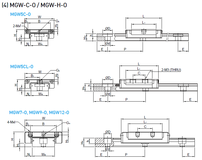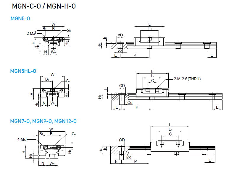在MGN-O中,它同樣具體體積小、輕量化,滑塊主體的一部分采用了樹脂材料,重量減少約20%,特別適合小型化設(shè)備使用。不銹鋼材質(zhì)之線性滑軌,包含滑塊、滑軌及其它金屬配件如鋼珠、保持器等,皆使用不銹鋼材質(zhì),具備防銹的特性。采用哥德型四點接觸設(shè)計,可承受各方向負(fù)荷,具備剛性強,精度高等特性。有鋼珠保持器設(shè)計,在精度允許下具備互換性。